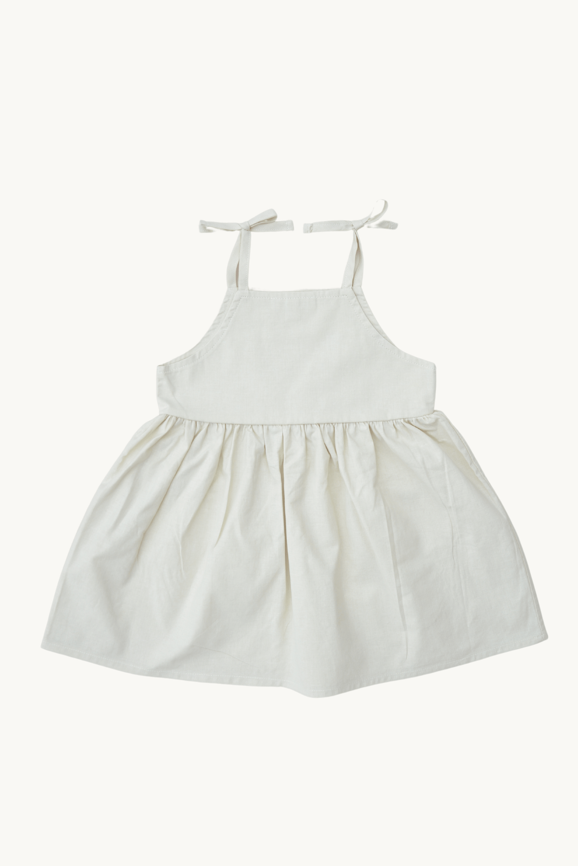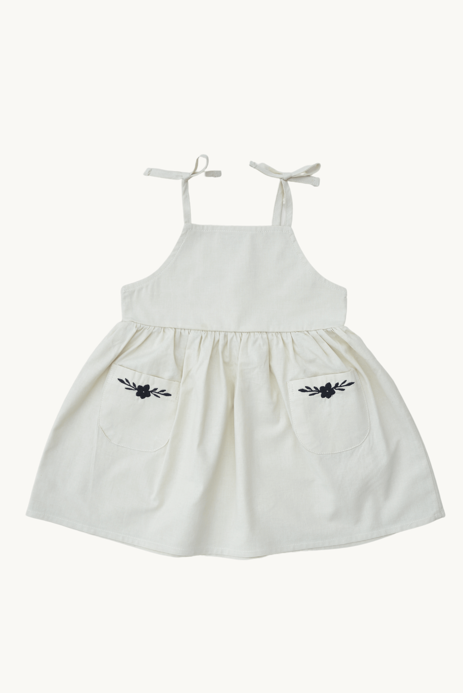 ESTELLE Dress – Beige Cotton with Embroidered Pockets