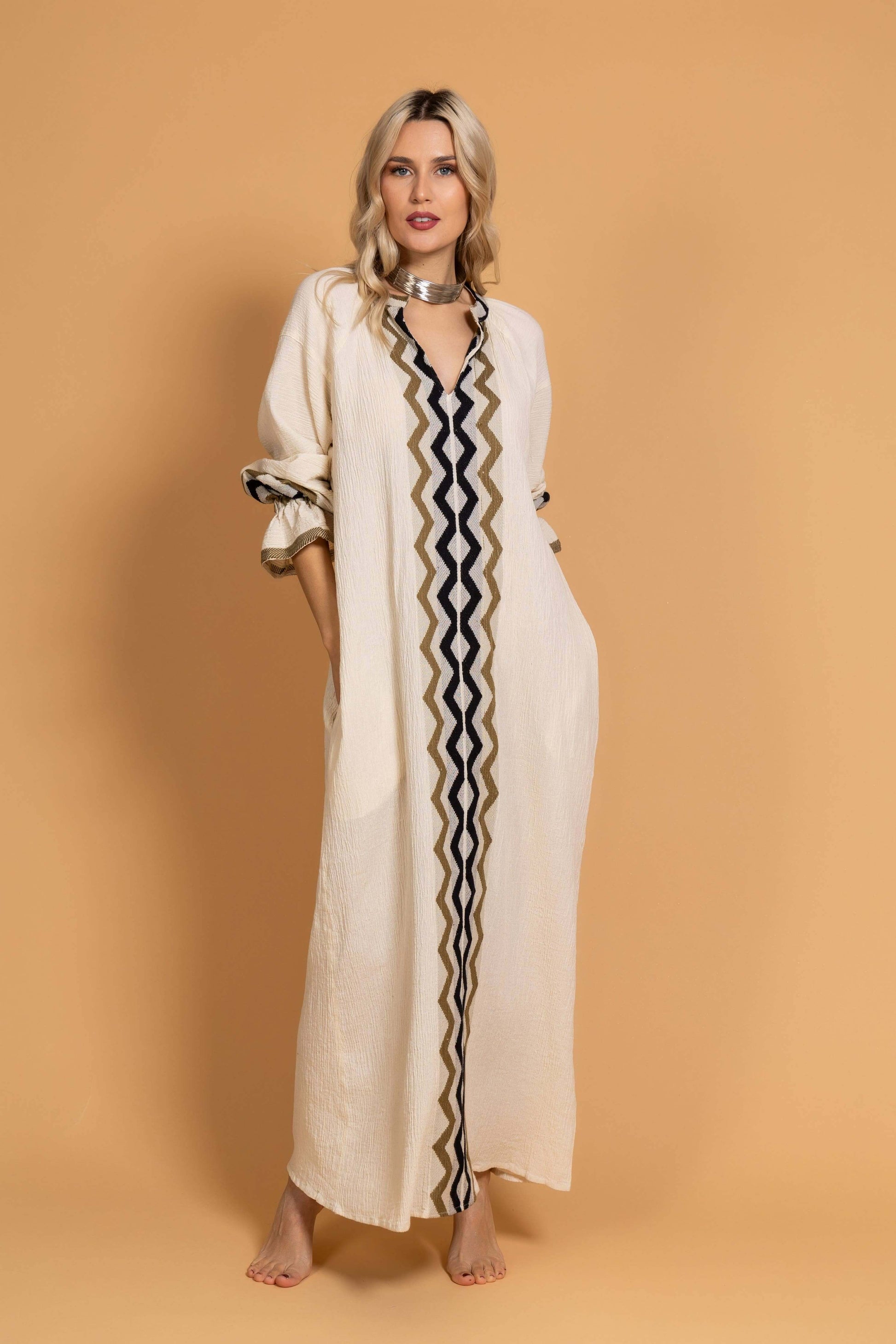 Crafted from textured cotton jacquard, this long-sleeved woven dress channels ancient Greek elegance through a modern lens. The intricate pattern draws inspiration from classical Greek motifs, blending heritage craftsmanship with contemporary simplicity.