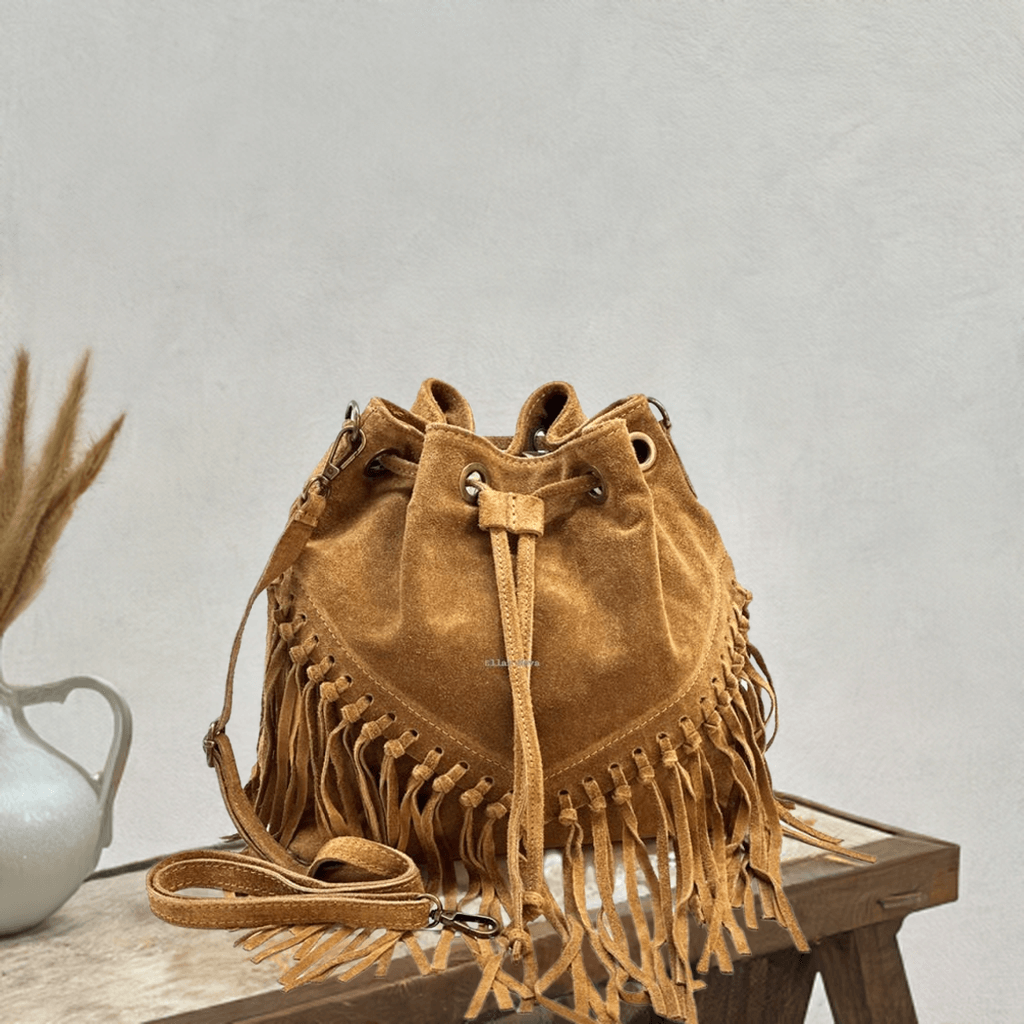 The Frangia Suede Bucket Bag celebrates bohemian charm and luxurious Italian craftsmanship. Designed for modern explorers, this artisanal suede handbag seamlessly blends style, versatility, and functionality—taking you from city streets to far-off escapes with an effortlessly chic touch.