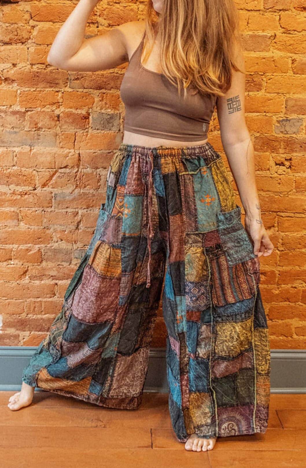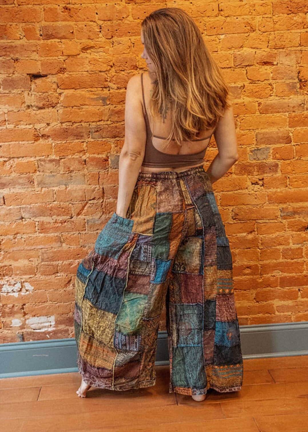 Available in two sizes and three unique colors, you can find the perfect pair to suit your individual style. Embrace your free-spirited fashion sense with these bohemian-inspired pants, designed for the modern, conscious consumer.