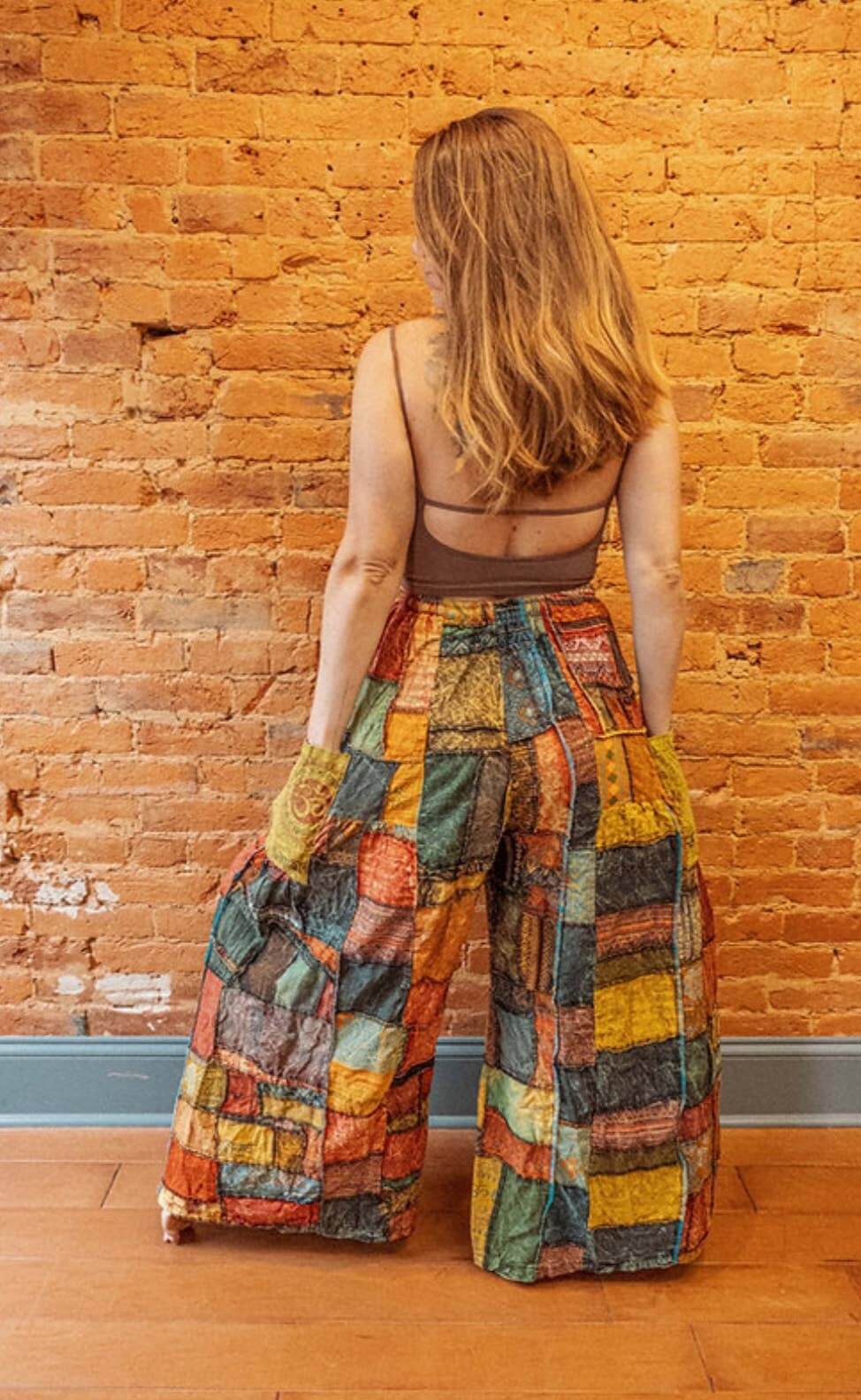 Hippie Boho Patchwork Flare Wide Leg Pants