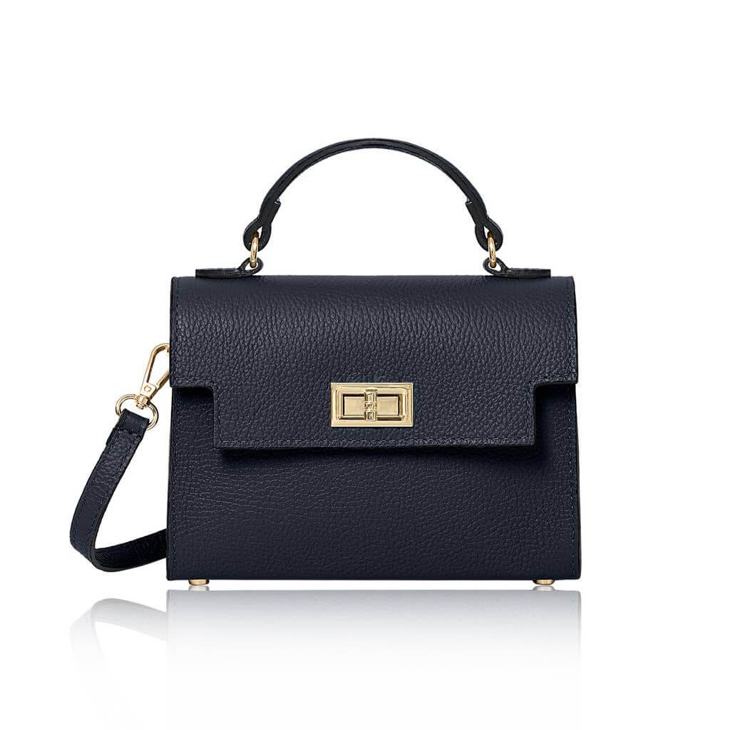 This Italian handmade authentic leather bag is crafted with precision and elegance, featuring a compact structured design that maintains its shape. The turn-lock closure and gold-tone hardware add a sophisticated touch. Inside, a zippered side pocket ensures secure storage for small essentials. With an adjustable and detachable shoulder strap, the bag can be worn as a crossbody, on the shoulder, or carried as a top handle. Its small yet spacious design is perfect for formal events, workdays, or casual outings, making it a versatile and stylish accessory for any occasion.