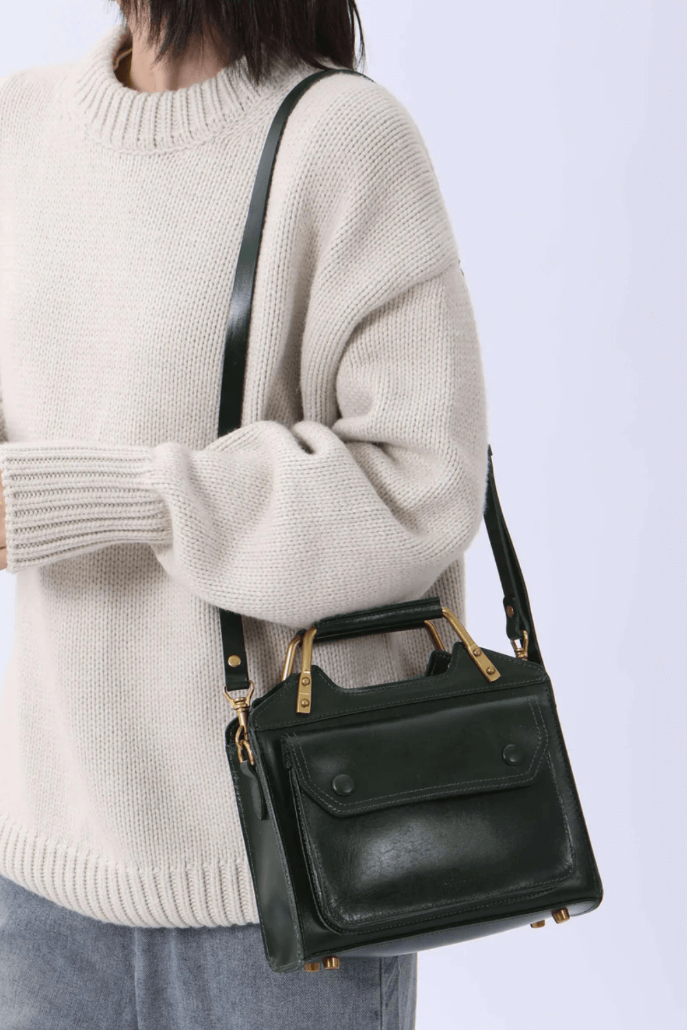This small yet statement-making crossbody bag blends 70s retro flair with sleek, sophisticated structure. Expertly handcrafted using naturally tanned Italian leather and finished with Japanese brass hardware, it embodies artisanal excellence while offering functionality for the modern lifestyle.